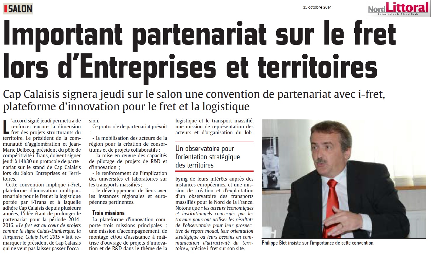 En vue de soutenir l’action de la plateforme d’innovation i-Fret dans le cadre de cette programmation 2014 – 2016, Cap Calaisis s’engage sur une participation de 30 000€ TTC par an pour soutenir la recherche et l’innovation dans les domaines du Fret et du transport et logistique. Pourquoi ? Parce que le Fret est inscrit dans l’ADN de notre territoire. Nous possédons, sur le territoire, l’une des entreprises de transport les plus innovantes au monde, Eurotunnel, et demain s’ouvrira le plus important chantier portuaire du siècle avec Calais port 2015.